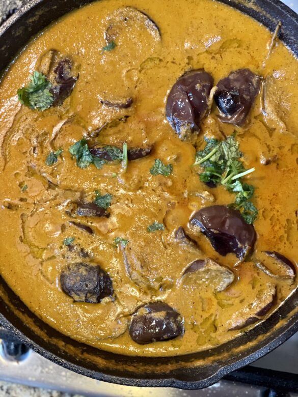 Here is a fantastic recipe for some mouth-watering baby eggplant gravy. It tastes as good as it looks. This is a simple gravy made with roasted peanuts, tomatoes, and onions. It cannot get simple than this. It is super popular in the south of India. It is mainly a side dish with a delicious plate of Biryani.