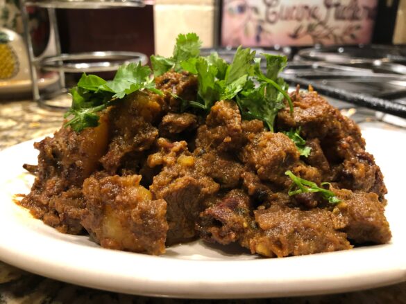 Here I come to you with an exciting mouth-watering recipe of Beef Bhoona (means “mash or soften” ). You can make this dish within 20 mins in a pressure cooker or Instant pot. I would say in a regular pot it may take about 45 mins to get nice and tender. This dish is one of my childhood favorites. Growing up in a tiny 1 bedroom apartment whenever my mom would cook this dish our little hearts couldn’t wait until the time she said “its dinner time “.