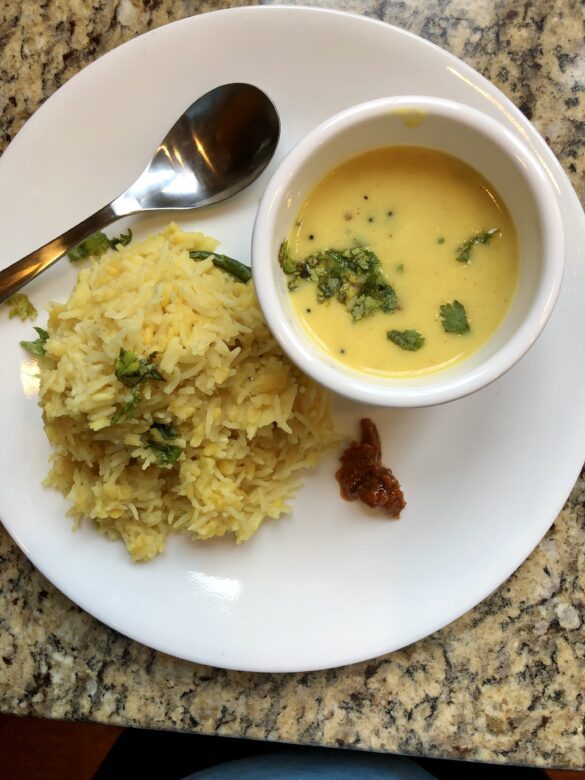 I was born in the state of Maharashtra where they dominantly speak the Marathi language. In Mumbai where I spent most of my teenage years, I learned to loved vegetarian foods, because the majority of people are Hindus who are vegetarian, most of the time. We ate all types of food prepared in that particular region and their unique style of cooking. All regions have their own style of making the same foods with different spices. You will find many variations of the same dish in different states. My mom would make kadhi at least once a week, because out of 7 days in the week, we would eat meat mostly on Sundays only. For the rest of the days, she would come up with different styles of vegetarian recipes to please us. This is one of my favorites! There are few moderations to this recipe, but pretty much an authentic Maharashtra kadhi. Here’s the tasty, tangy, hot and sweet recipe for you.