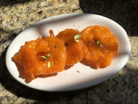 Serve them hot. Garnish with saffron strands and pistachio bits.