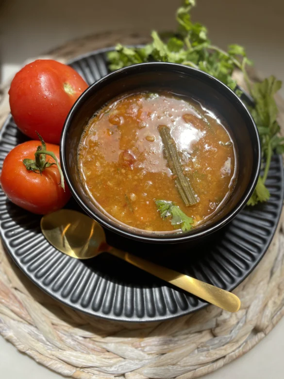 - Garnish it with some cilantro and serve it hot with rice, idli, Dosa or just like a soup