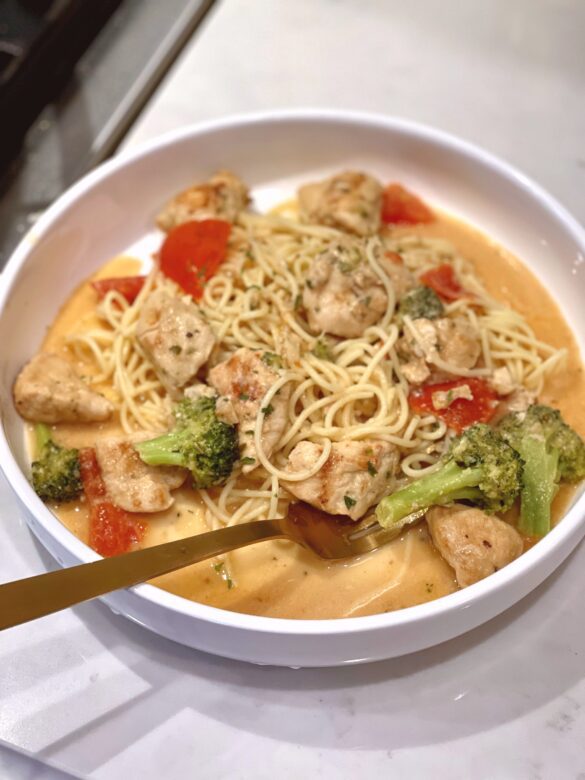 Happy Weekend! Craving some extra heavy pasta dish this weekend? I know you don’t wanna gain that extra 2000 calories right? Well look no further than this perfect alternative to that extremely heavy creamy pasta. I love making this on week nights or sometimes on weekends too. The ingredients are simple and this dish comes together swiftly.